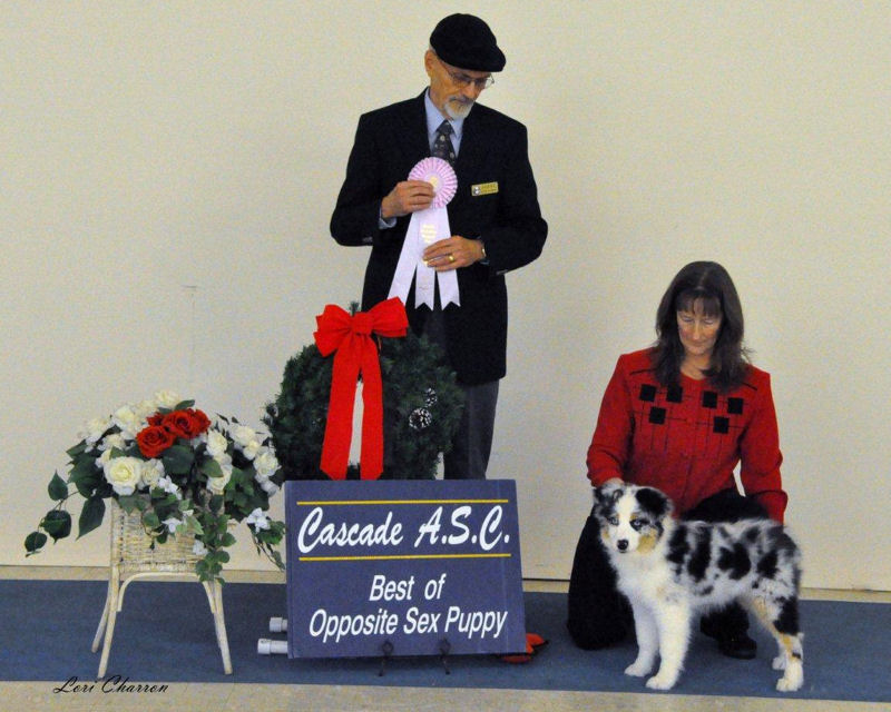 12/18/11: Our baby's first show and first time in the ring, Best Opposite Sex Puppy, AKC Judge Warren Hudson